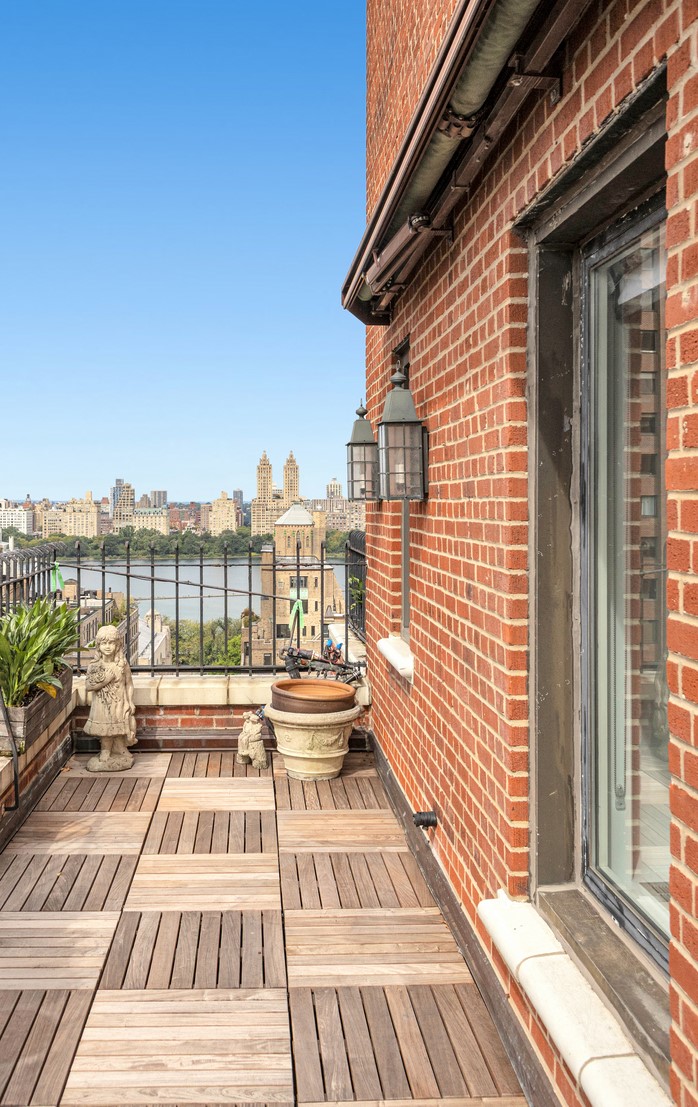 A semi-private elevator landing opens to a gracious entrance gallery and stunning south facing living room. Here, a wood-burning fireplace, herringbone hardwood floors, and gray oak and black lacquer built-ins create an atmosphere of timeless elegance. The living room flows directly onto the terrace offering spectacular views of Central Park and the Central Park Reservoir.