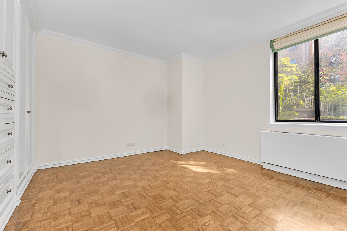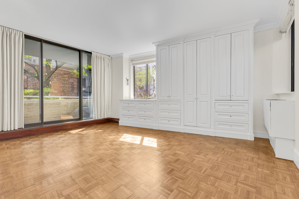 The upper level consists of two large bedrooms. The corner master suite features three exposures, many closets, built ins, an ensuite bath and a 13 foot terrace. The second bedroom is well appointed with a wall of built in closets plus a marble bath with deep soaking tub.